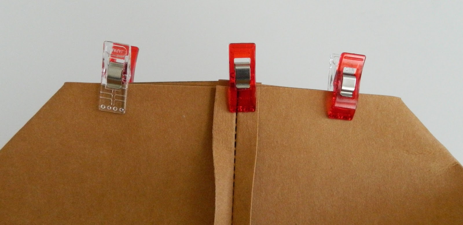 d) Smooth the top edge with your fingers clip through both exterior and lining layers to hold them in